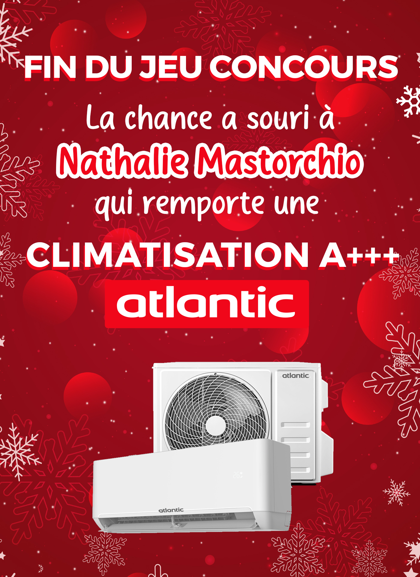 Nous avons le plaisir d’annoncer que Nathalie Mastorchio est l’heureuse gagnante et va bientôt pouvoir profiter de sa climatisation Atlantic Dojo 2 kW neuve.